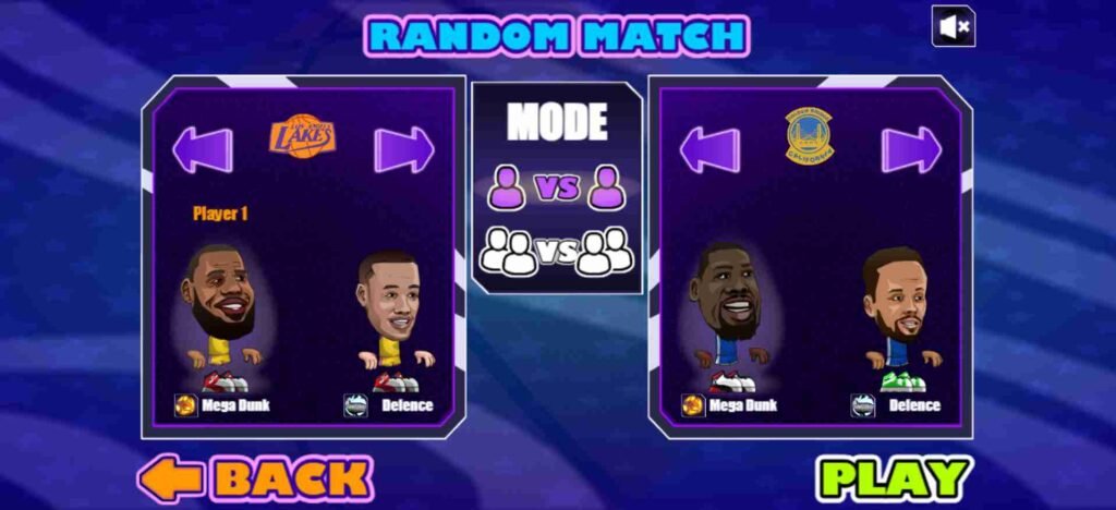 Basketball Stars offers an exciting way to sharpen your basketball skills and enjoy the game even when playing by yourself. In the 1 player mode, you can select from three sub-modes: Training, Random Match, and Tournament. Each sub-mode helps you get familiar with the gameplay, control, and overall operations of the game, making it easier to improve your abilities. Whether you want to go head-to-head with a random opponent or refine your moves in Training, the time spent here ensures you’re ready to tackle any field with confidence.